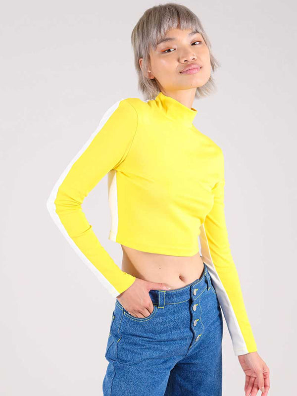 Bougie Crop Turtleneck Top, BCI Cotton, in Yellow & White