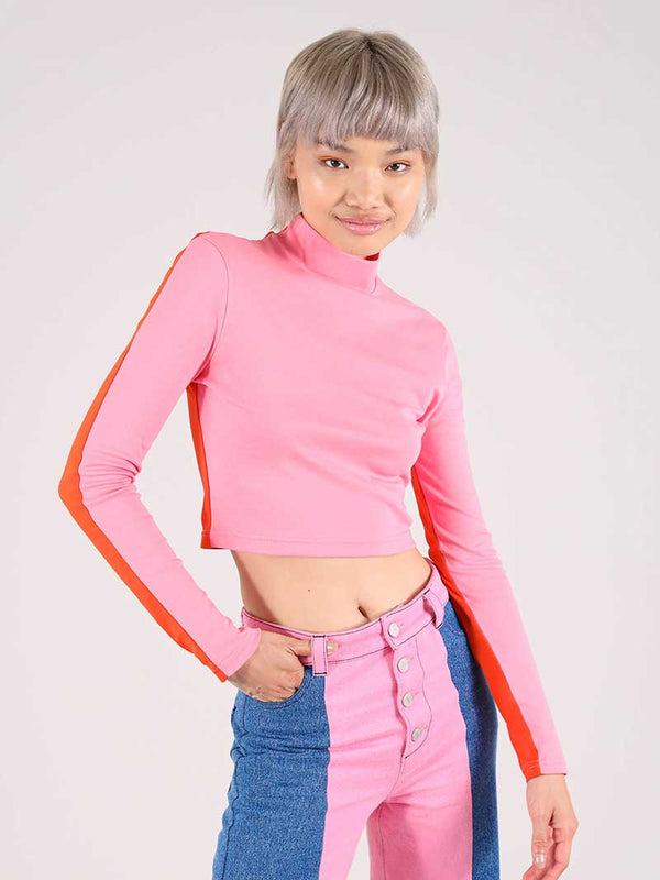 Bougie Crop Turtleneck Top, BCI Cotton, in Pink & Red