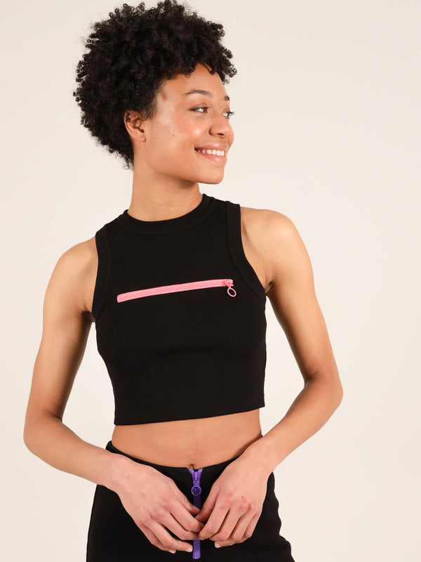 Wicked Zipper Crop Racer Top, Cotton, in Black