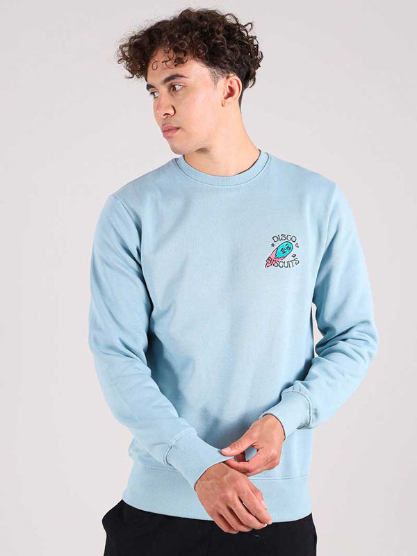 Disco Cult Embroidered Mens Sweatshirt, Organic Cotton, in Light Blue